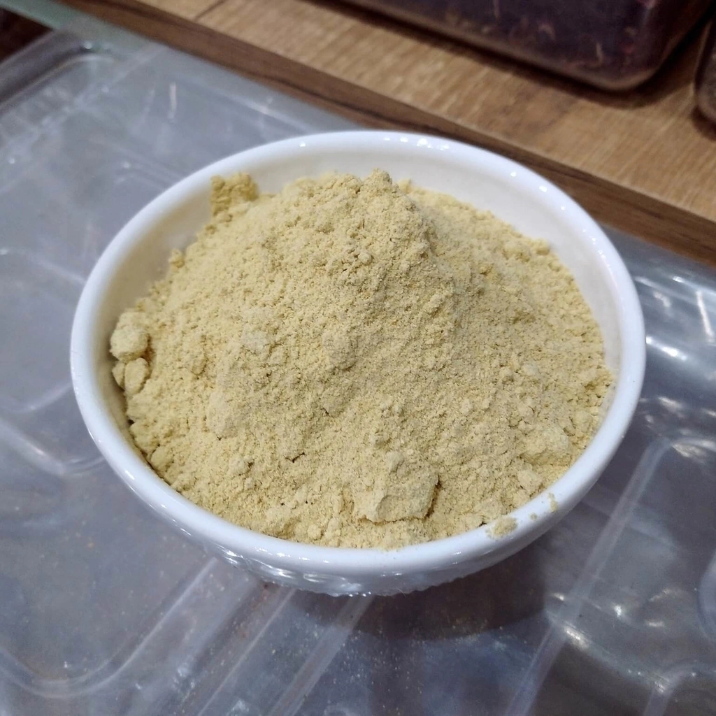 Produto em pó, feito a partir das sementes que passaram por um processo de desidratação e depois moídas.